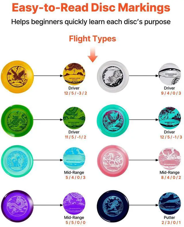 Driver 13-2 Disc Dimensions: 8.34 x 0.66 in/212 x 17 mm,Mid-Range 2 Disc Dimensions: 8.38 x 0.78 in/213 x 20 mm,Driver 8 Disc Dimensions: 8.34 x 0.74 in/212 x 19 mm,Driver 12 Disc Dimensions: 8.26 x 0.7 in/210 x 18 mm,Item Model Number: SS-DF-003,Discs Quantity: 8 pcs,Material: TPU,Driver 13-1 Disc Dimensions: 210 x 18 mm,Net Weight: 3.08 lbs/1.40 kg,Mid-Range 1 Disc Dimensions: 8.42 x 0.7 in/214 x 18 mm,Driver 9 Disc Dimensions: 8.34 x 0.7 in/212 x 18 mm,Putter Disc Dimensions: 8.38 x 0.86 in/213 x 22 mm