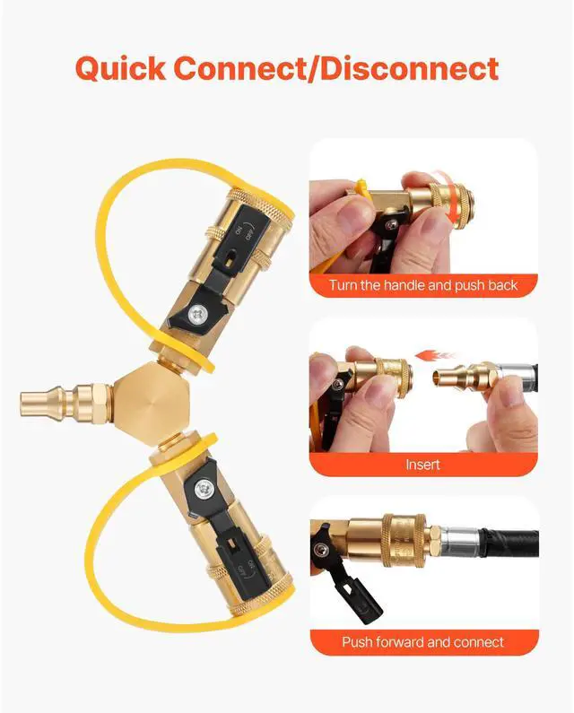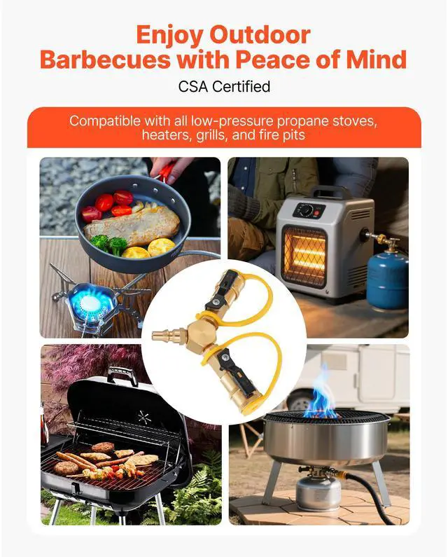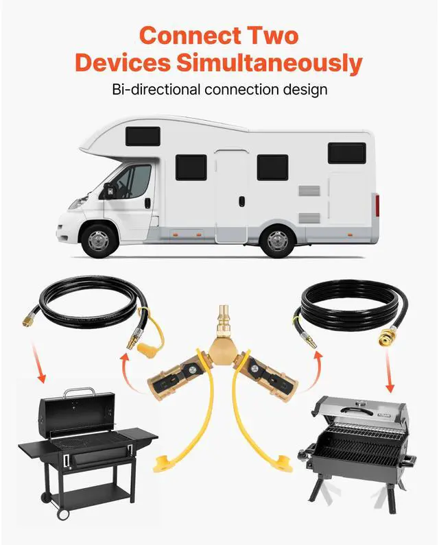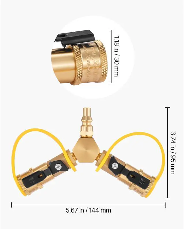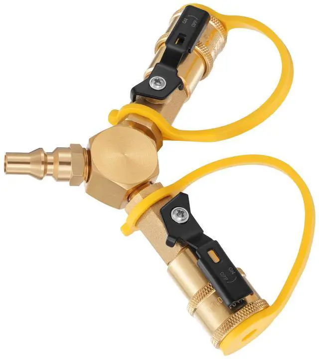 VEVOR 1/4-Inch RV Propane Quick Connect Y Splitter Adapter with Shutoff Valve