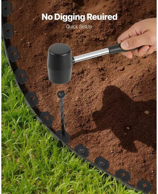 Plastic Edging Dimensions: 100 ft x 1.6 in (3000 x 4 cm),Type: L-Shaped,Number of Edging Pieces: 1,Color: Black,Item Model Number: NBXH-PL50-20,Product Weight: 10.5 lbs (4.76 kg),Ground Stake Length: 8 in (200 mm),Plastic Edging Thickness: 0.04 in (1 mm),Main Material: PE