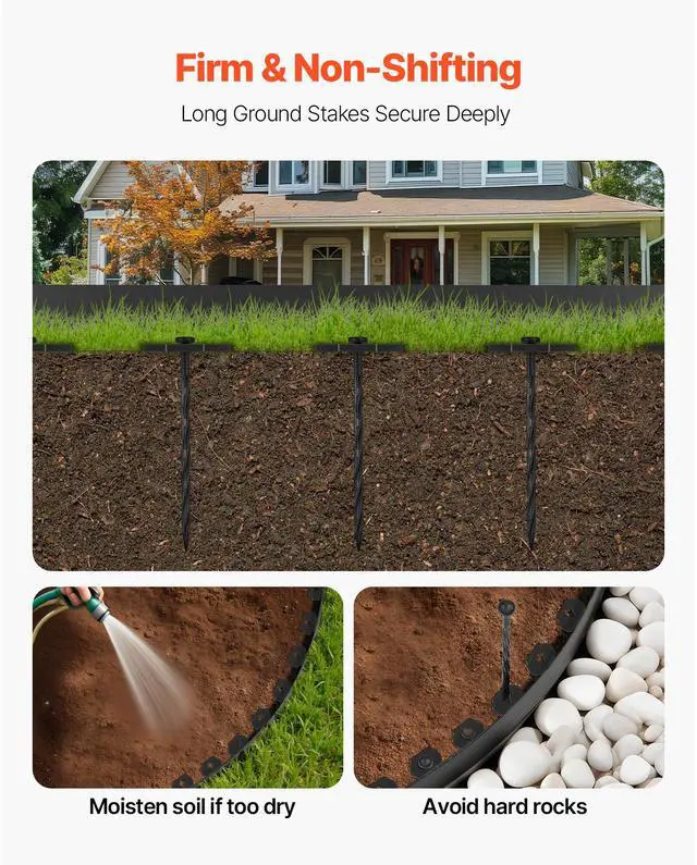 VEVOR Landscape Edging 100 ft x 1.5 in L-Shaped Plastic Garden Border No Dig