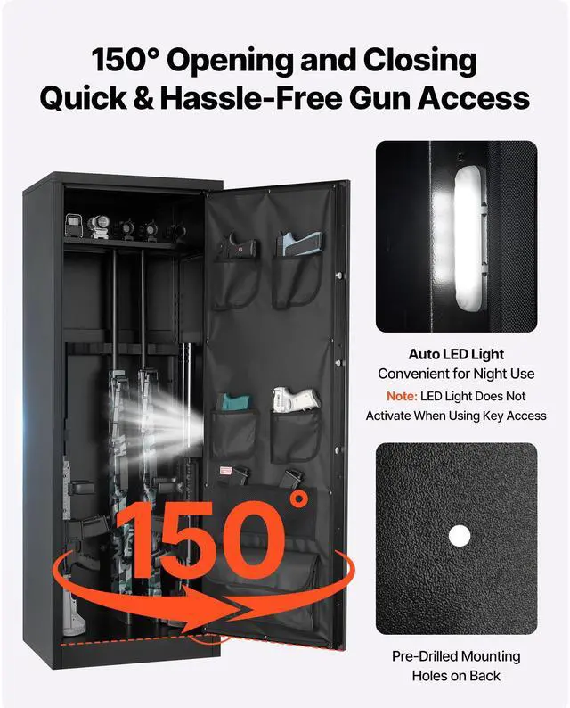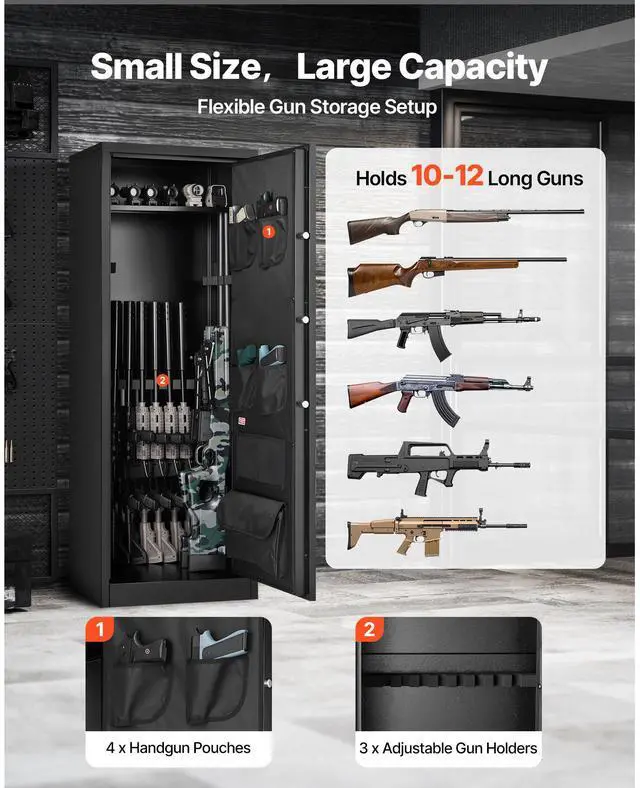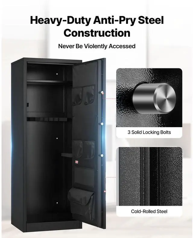 VEVOR 10-12 Gun Safe Long Gun Cabinet for Rifles & Pistols Key & Password Lock