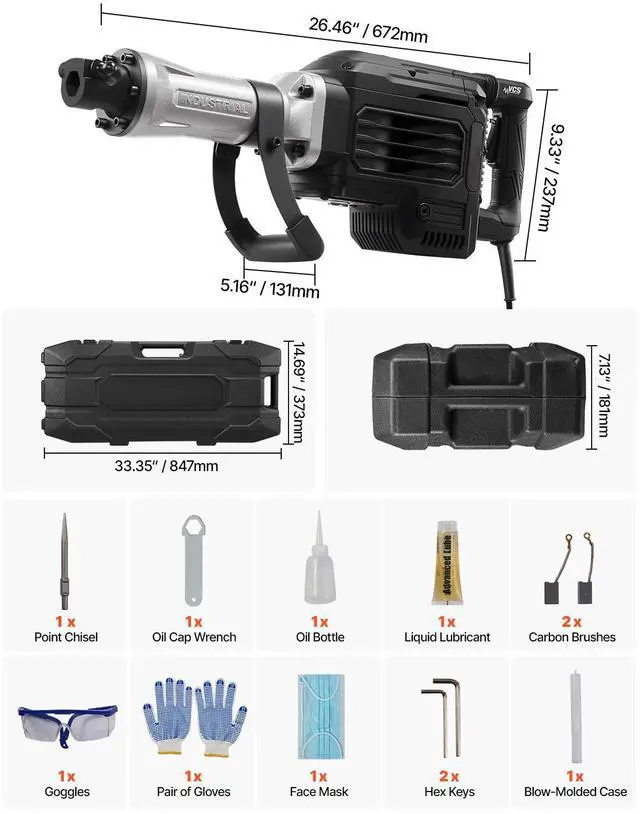 Bare Tool Weight (without chisels): 32.4 lbs / 14.7 kg