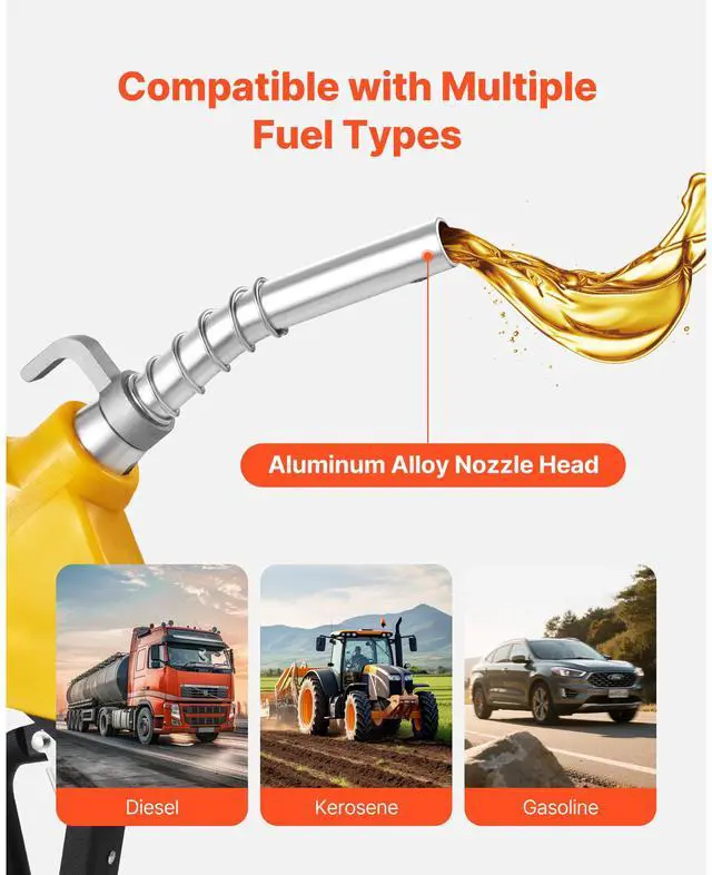 VEVOR 3/4 in NPT Automatic Fuel Nozzle 0.78 in Spout Auto Shut Off Diesel Nozzle