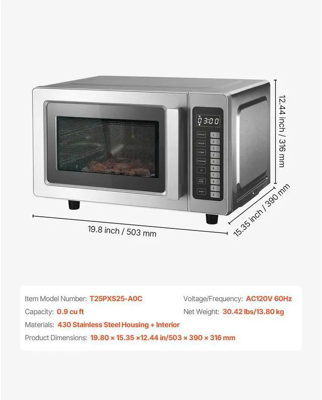Product Material: 430 Stainless Steel,Voltage/Frequency: AC120V 60Hz,Capacity: 0.9 cu ft,Item Model Number: T25PXS25-A0C,Product Dimensions: 19.80 x 15.35 x 12.44 in/503 x 390 x 316 mm,Net Weight: 30.42 lbs/13.80 kg