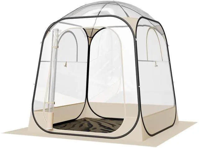 Opening Style: 4-Side Pop-Up,Item Material: Flat Steel Wire + Fiberglass Rod + 0.15 mm TPU + 210D Oxford Fabric,Main Materials: TPU Plastic + 210D Oxford Fabric + Steel Wire Frame,Color: Beige + Transparent PVC with Black Trim and Black Fiberglass Rods,Item Model Number: 121083,Item Dimensions: 62.99 × 62.99 × 71.65 in / 1600 × 1600 × 1820 mm,Item Type: Sports Tent,Net Weight: 13.23 lbs / 6.00 kg