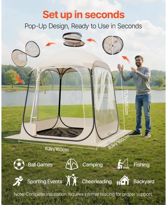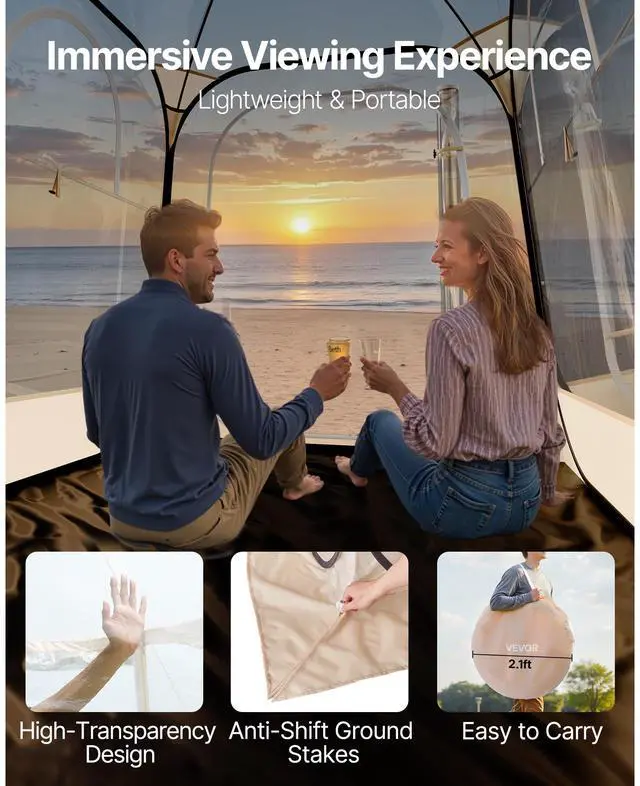 VEVOR Pop up Sports Tent 63x63 in Outdoor Clear Bubble Tent Weather Proof Pod