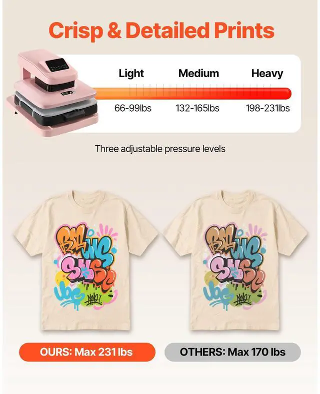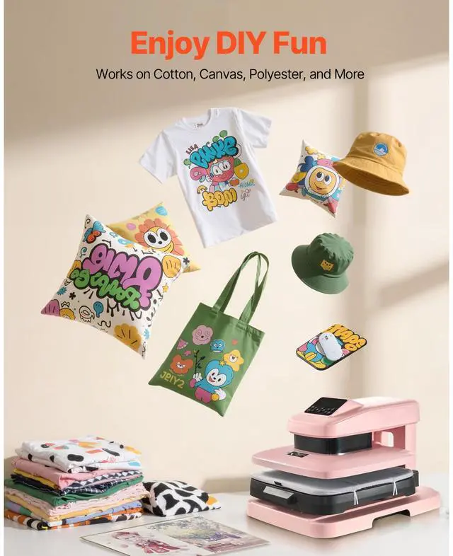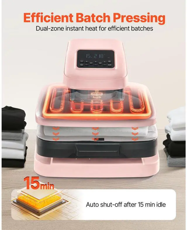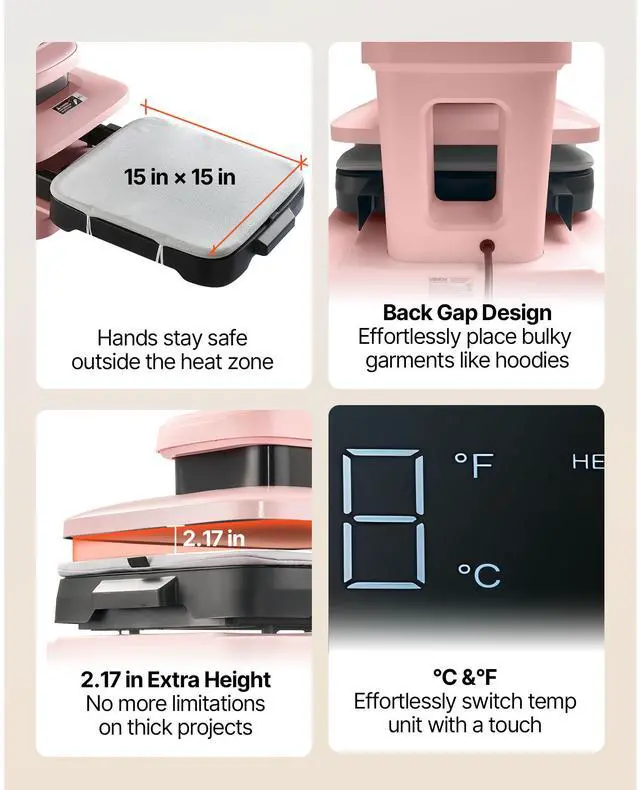 VEVOR Auto Heat Press Machine T-Shirt Press Machine 15 x 15 in Heat Plate Pink