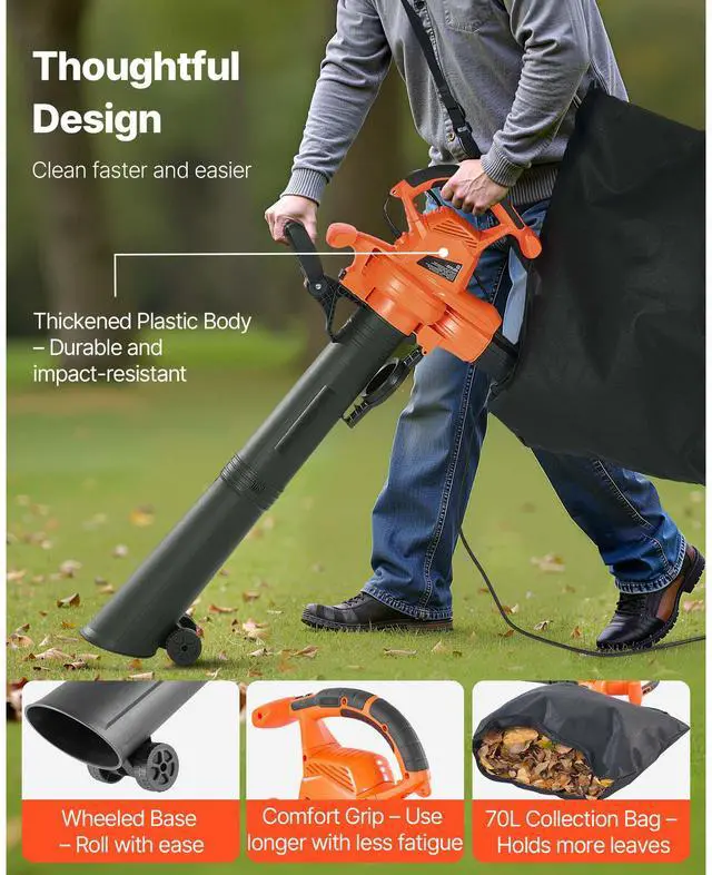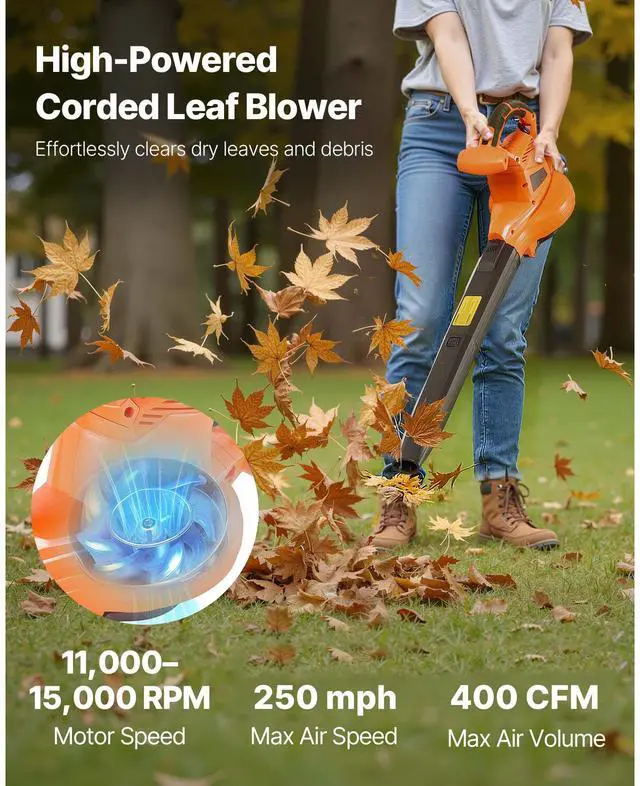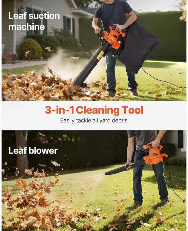 VEVOR Electric Leaf Blower 3-in-1 Blower Vacuum Mulcher 12Amp 217.35MPH 53.27CFM