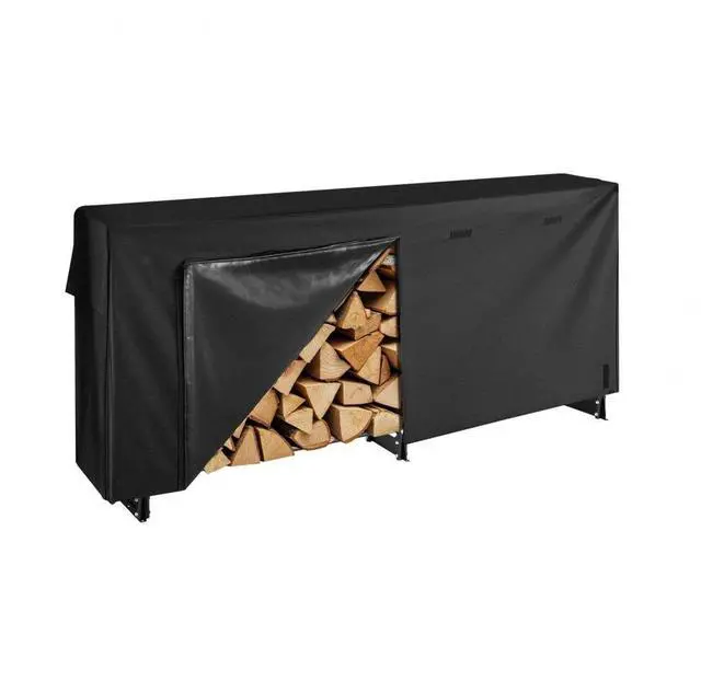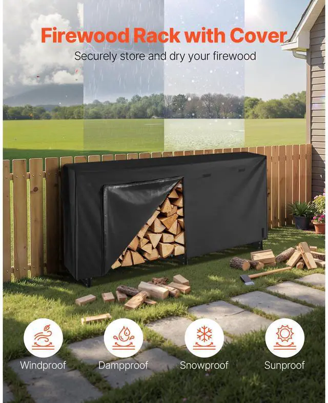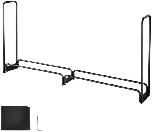 VEVOR 8 ft Outdoor Firewood Rack with Cover 1/2 Cord Storage Metal Log Holder