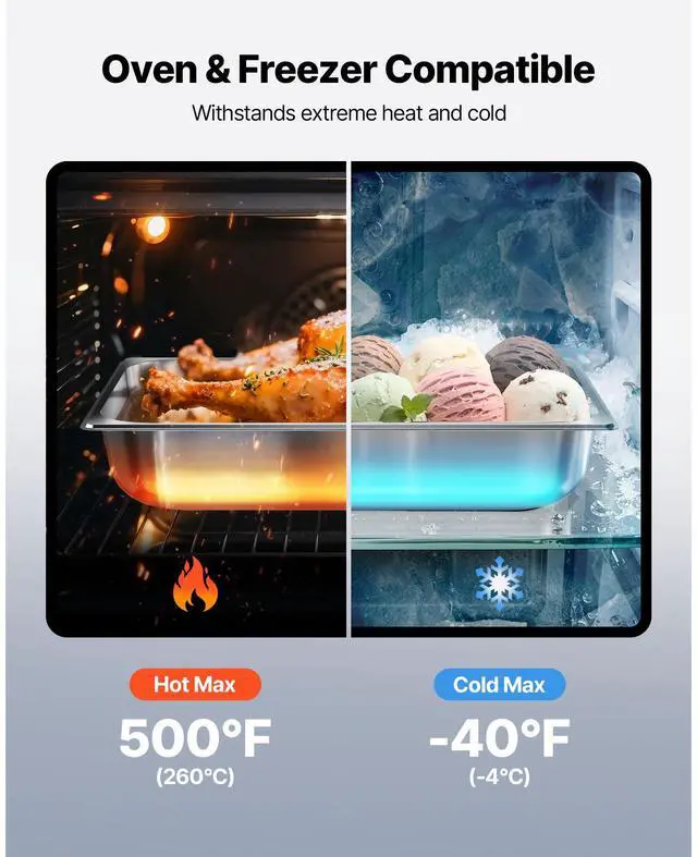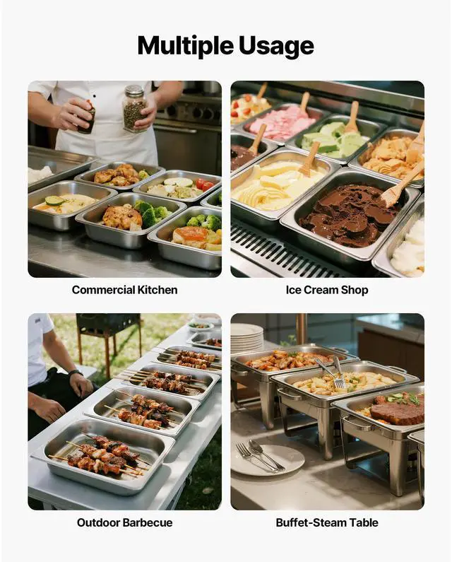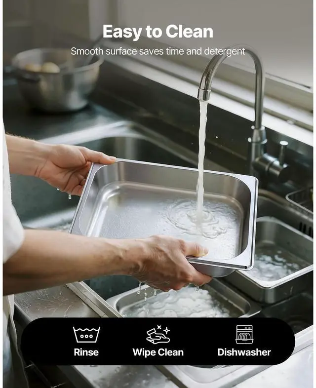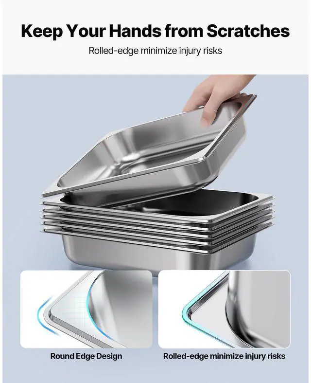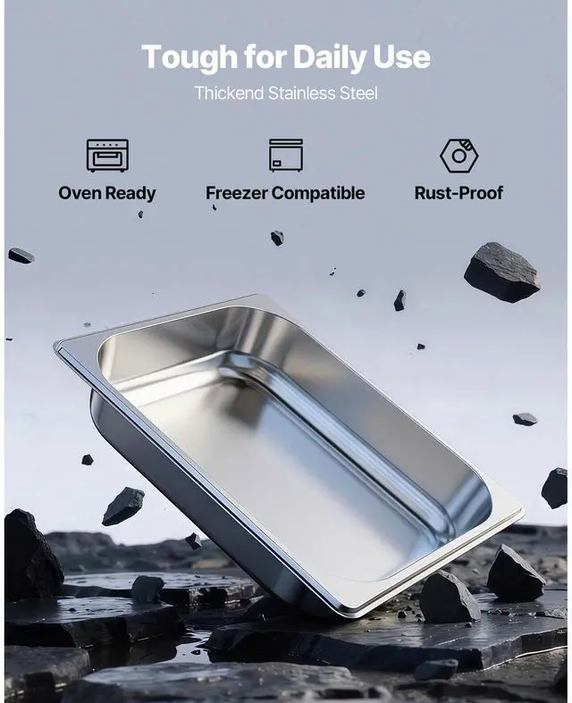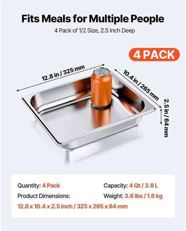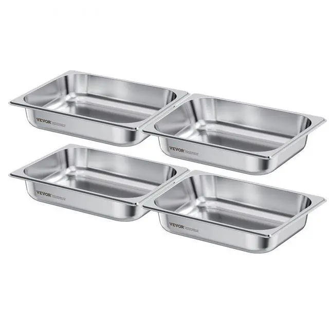 VEVOR 1/2 Size Hotel Pans Steam Table Pans 2.5 Inch Deep Stainless Steel 4 Pack