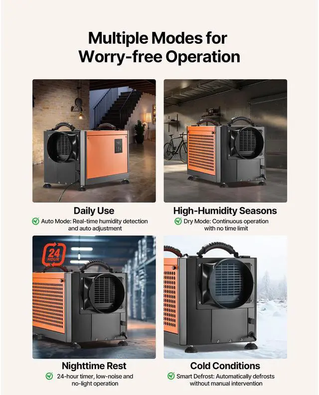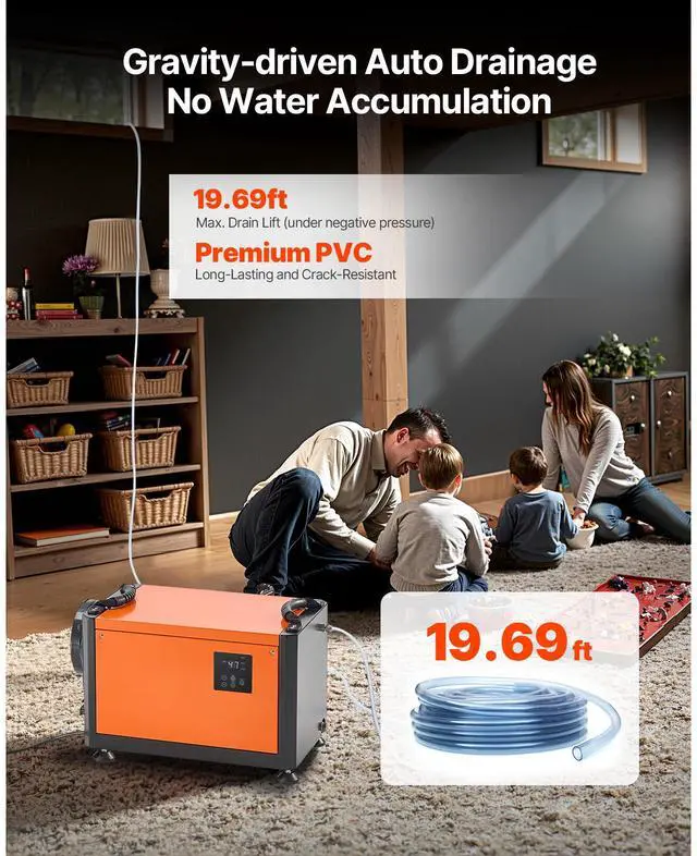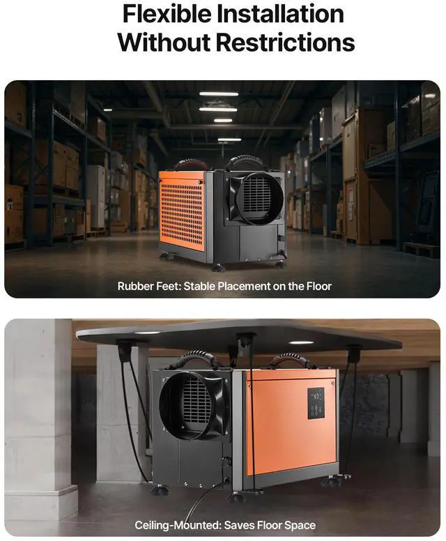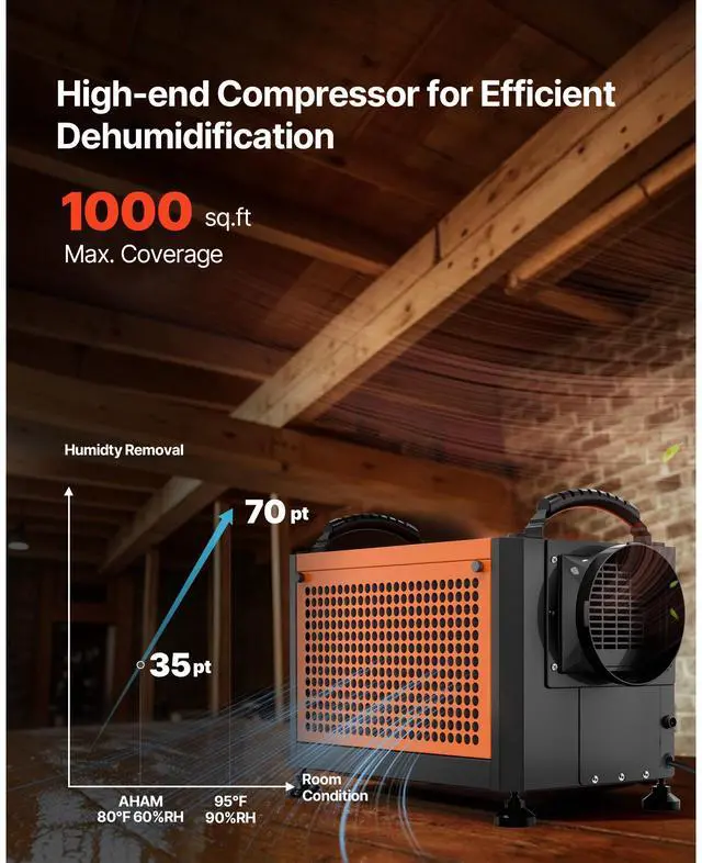 VEVOR 70 Pints Commercial Dehumidifier with Pump Auto Defrost for Crawl Space