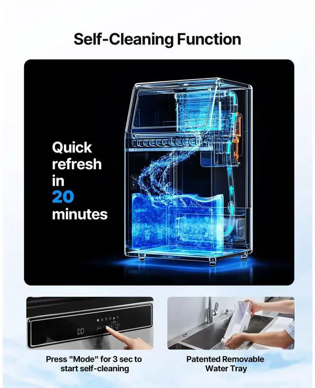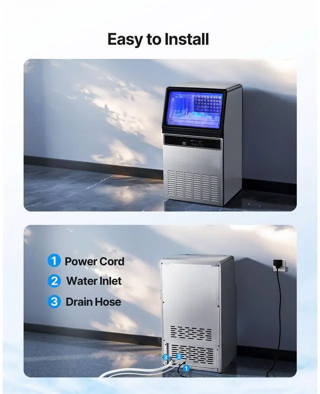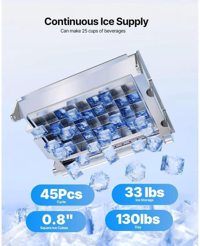 Noise Level: 50 dB,Number of Ice Trays: 45 pcs,Operating Temperature: 50°F to 100.4°F / 10°C to 38°C,Item Model Number: IMC9000F-UL,Product Weight: 56.22 lbs / 25.5 kg,Max. Ice Production: 130 lbs/day (59 kg/day),Adjustable Ice Thickness: Thick & Thin Ice Options,Ice Storage Capacity: 33 lbs / 15 kg,Product Dimensions: 17.52x15.94x31.30 in / 445x405x795 mm (with adjustable feet)