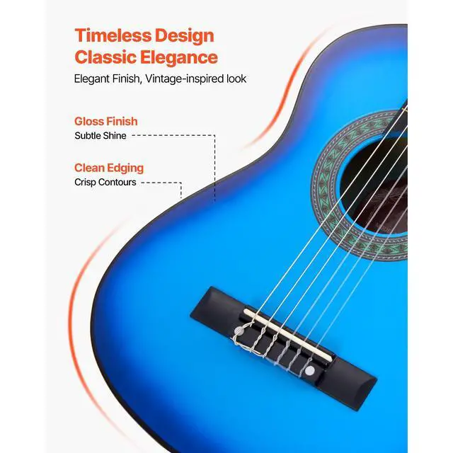 VEVOR Classical Guitar 30 in Guitar Beginner Starter Kit with Nylon Strings Blue
