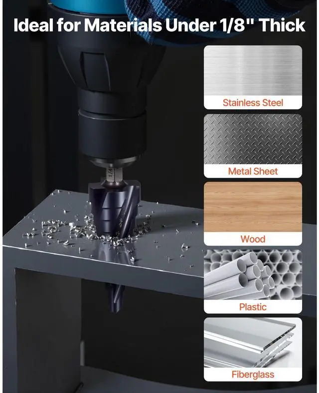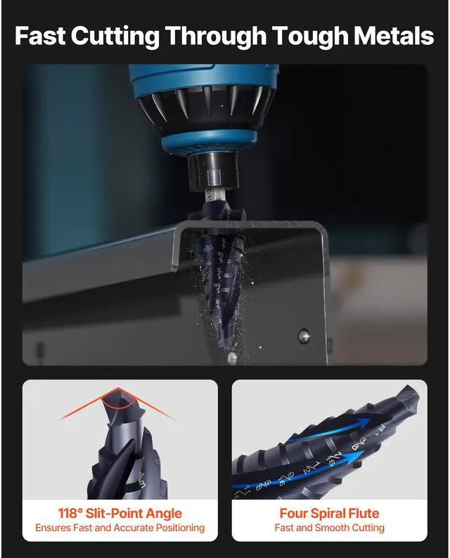 VEVOR Step Drill Bit Set Step Drill Bits 1/8 - 7/8 inch 3 Pcs High Speed Steel
