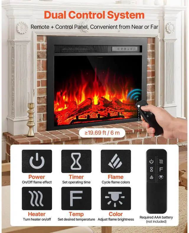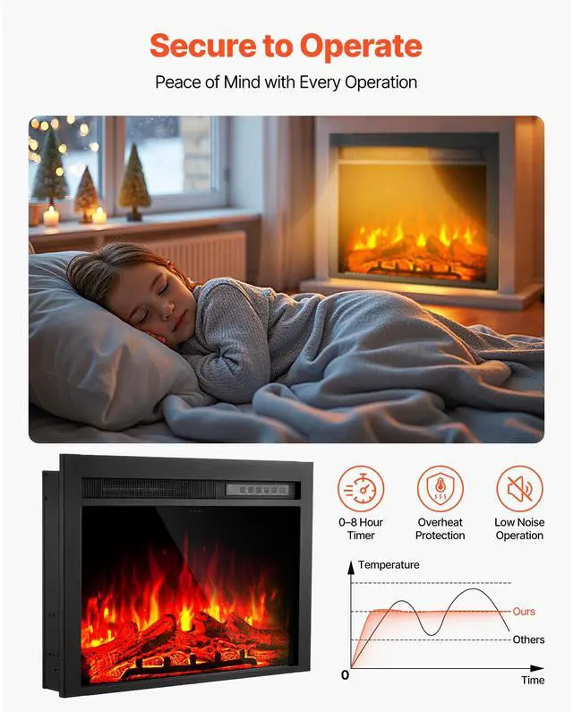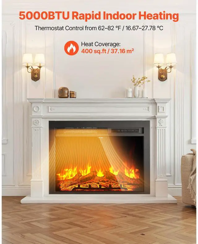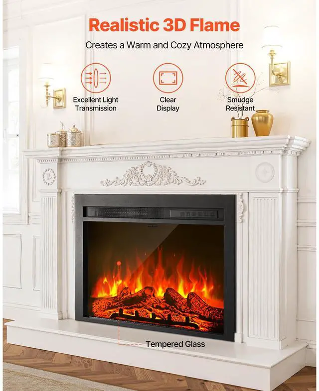 VEVOR 28.5in Electric Fireplace Insert Wall Recessed Heater 750W 1500W Remote