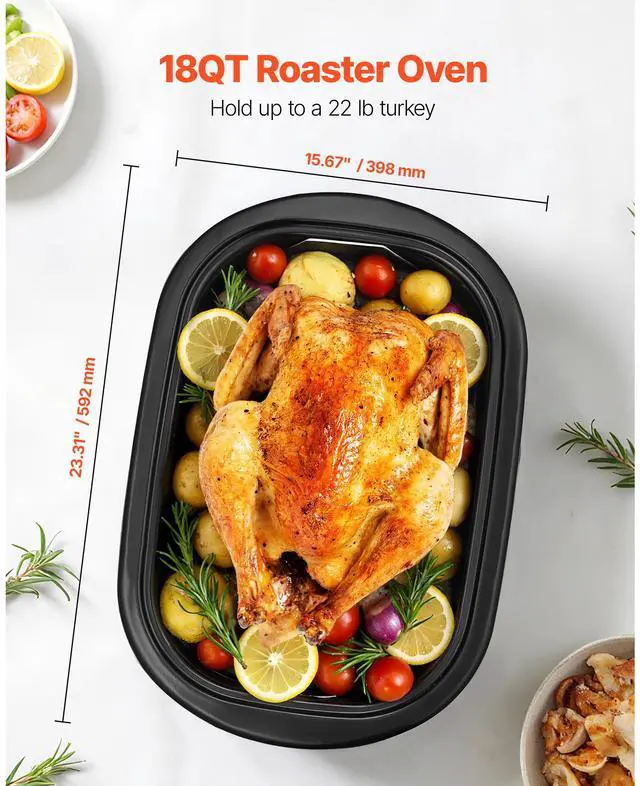 VEVOR Electric Roaster Oven 18QT Electric Roasting Pan with Self-Basting Lid