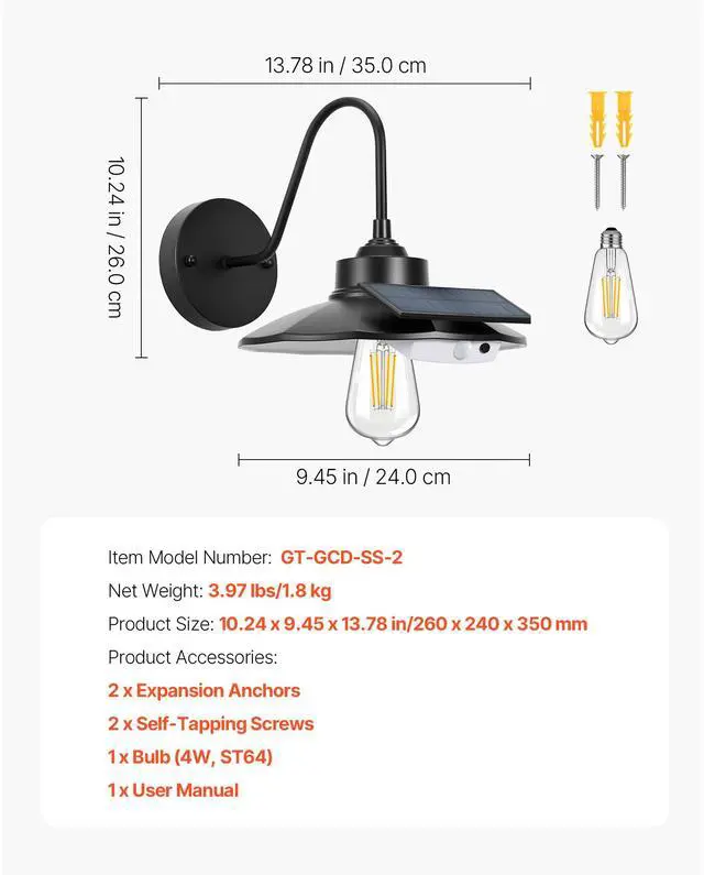 2 Pack Solar Outdoor Barn Light 3 Modes Farmhouse Gooseneck Wall Sconce Black