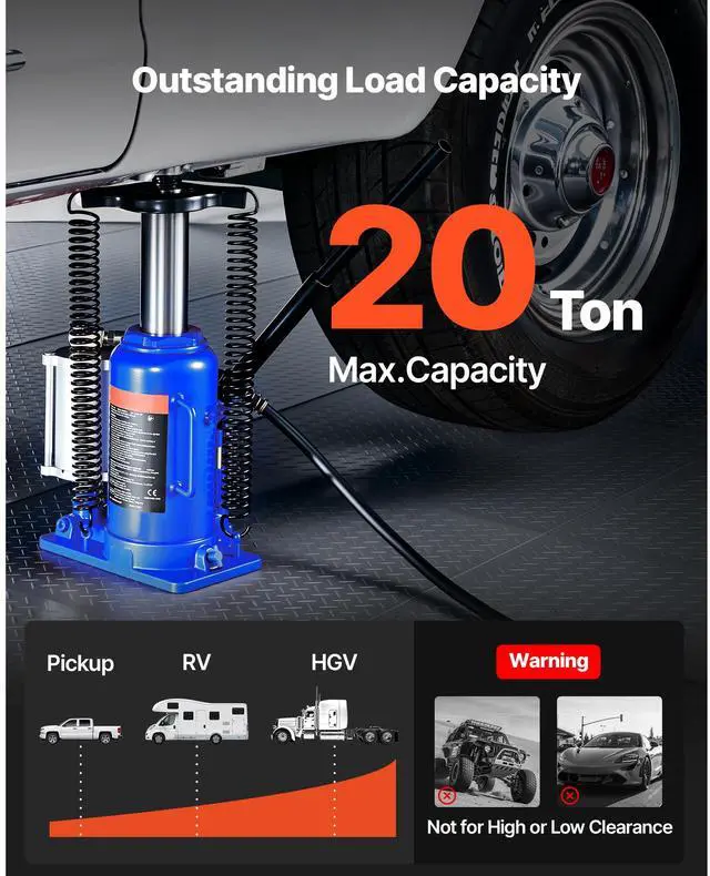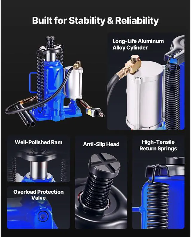 • Air Hydraulic Bottle Jack High Lift Jack 20 Ton (44092 lb) Car Repair Blue
