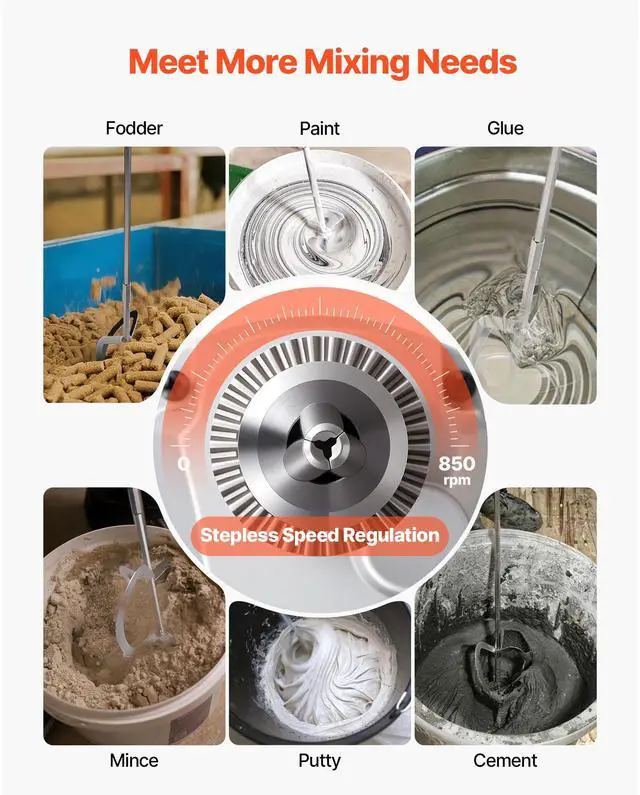 VEVOR Drill Mixer 1100W 0-850RPM Concrete Mixer Machine Concrete Mud Mixers
