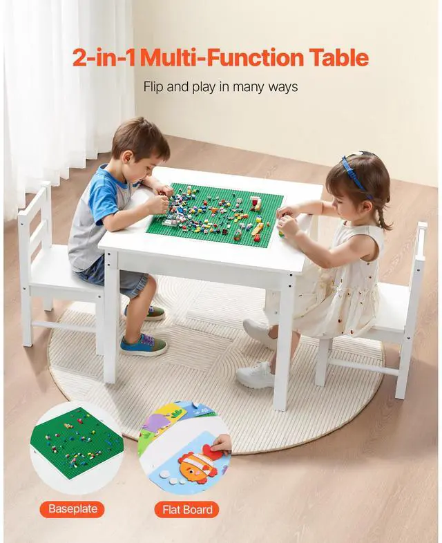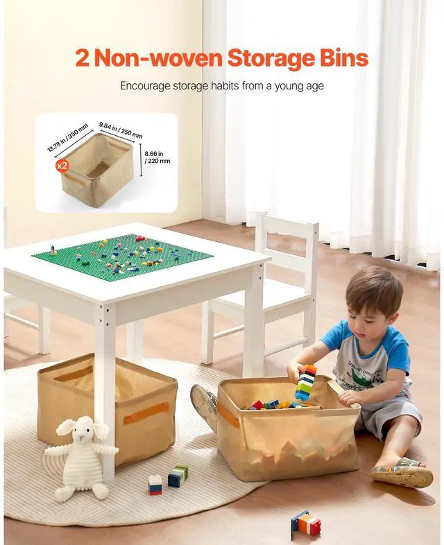 VEVOR 2 in 1 Kid Activity Table and 2 Chairs Set Toddler Play Table with Storage