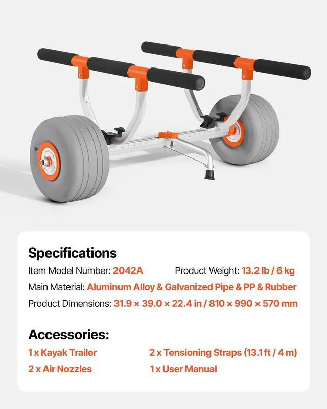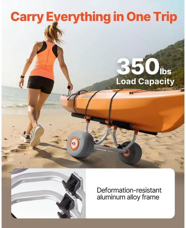 Kayak Cart 350 lbs Detachable Canoe Carrier with 12 in Inflatable PU Tires