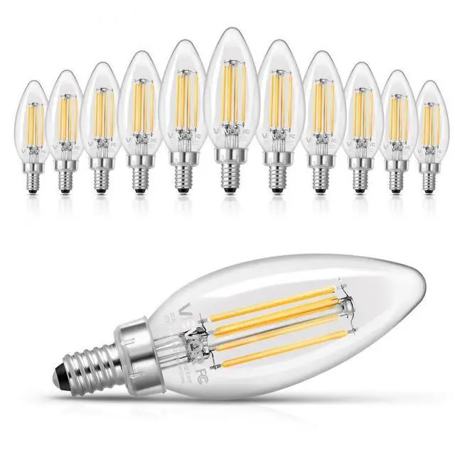 VEVOR LED Candelabra Bulbs 12-Pack Dimmable Chandelier Light Bulbs 2725K 90+ CRI