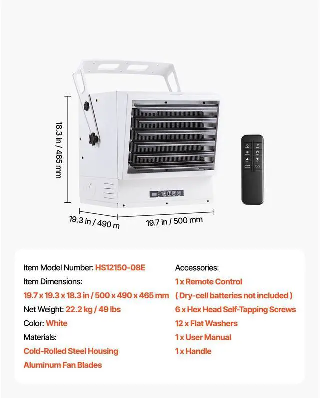 Materials: Cold-Rolled Steel Housing, Aluminum Fan Blades