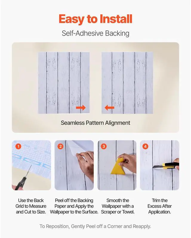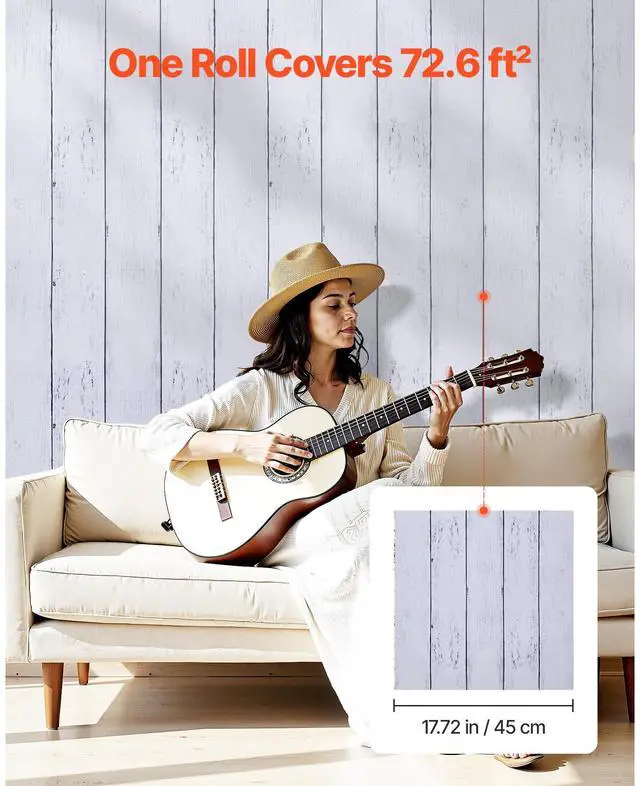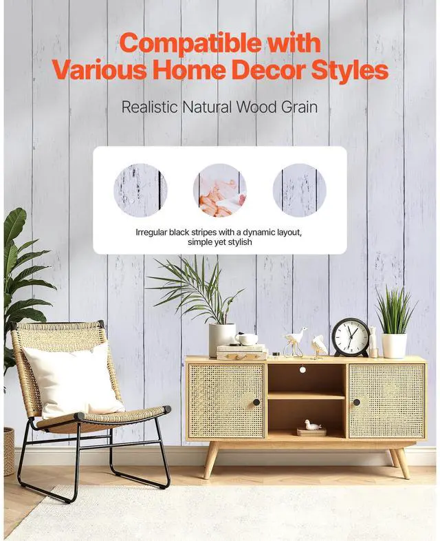 • VEVOR Peel and Stick Wallpaper 17.7x472.4 in White Wood Textured Waterproof