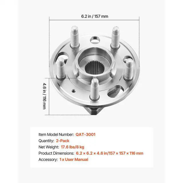 VEVOR Front/Rear Wheel Bearing & Hub Assembly Pair for 2020 Chevy Impala Premier