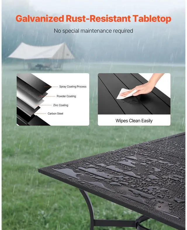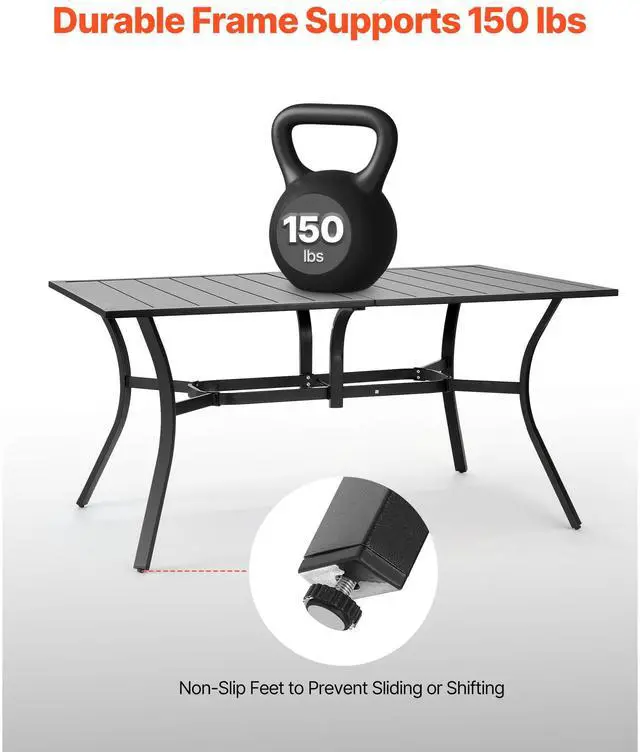 VEVOR Outdoor Patio Dining Table Rectangular Metal Slat Garden Furniture for 6