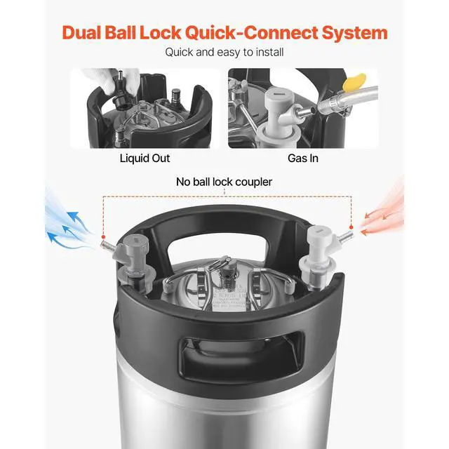 VEVOR Corny Ball Lock Keg 5 Gallon Ball Lock Corny Keg Home Brew Kegs 2 PCS