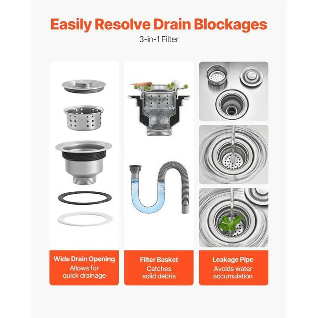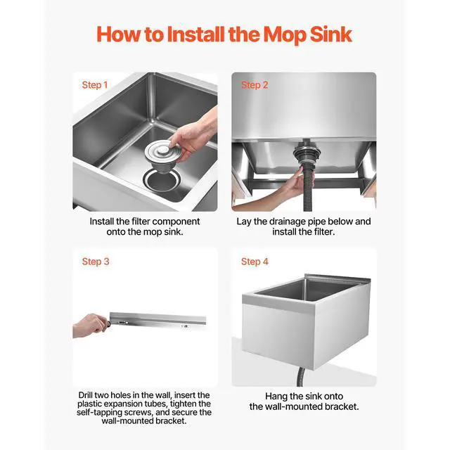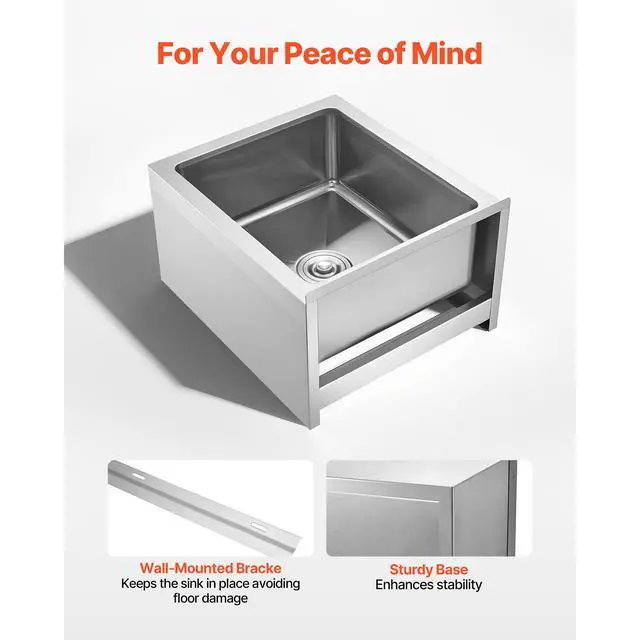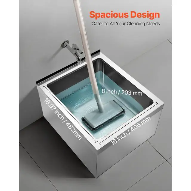 VEVOR Stainless Steel Floor Mop Sink 22 x 19 x 12 in with Backsplash and Filter