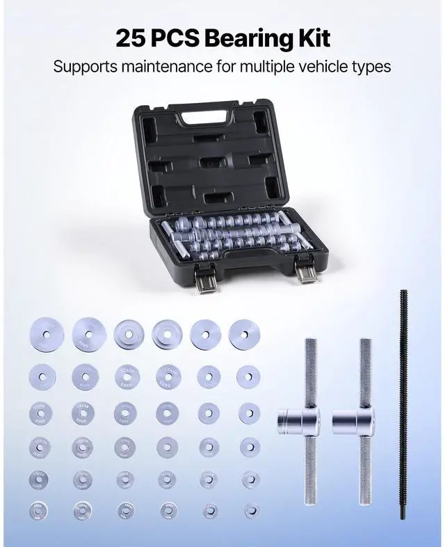 VEVOR Bearing Press Kit Bushing Bearing Seal Driver Removal Tool Set 25 Pcs Case Bearing Kit Versatile Sizes Premium Material Reliable Operation Multi-Purpose Application Easy to Carry Item Model Number: XC2124,Net Weight: 2.87 lbs/1.3 kg