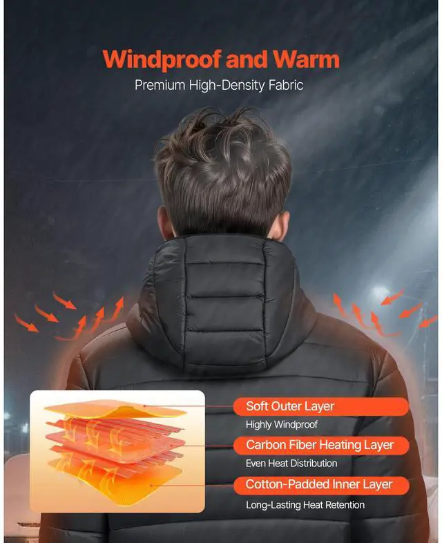 Size: M,Three Temperature Levels: 104140 / 4060 ,Color: Black,Item Model Number: RHB-004,Style: Women,Input Voltage: 7.4 V,Item Dimensions: 64.57 × 36.22 inch / 1640 x 920 mm,Net Weight: 1.7 lbs / 0.77 kg,Power: 13 W,Main Material: Waterproof Outer Fabric + Cotton Lining,Power Bank Capacity: 8000 mAh