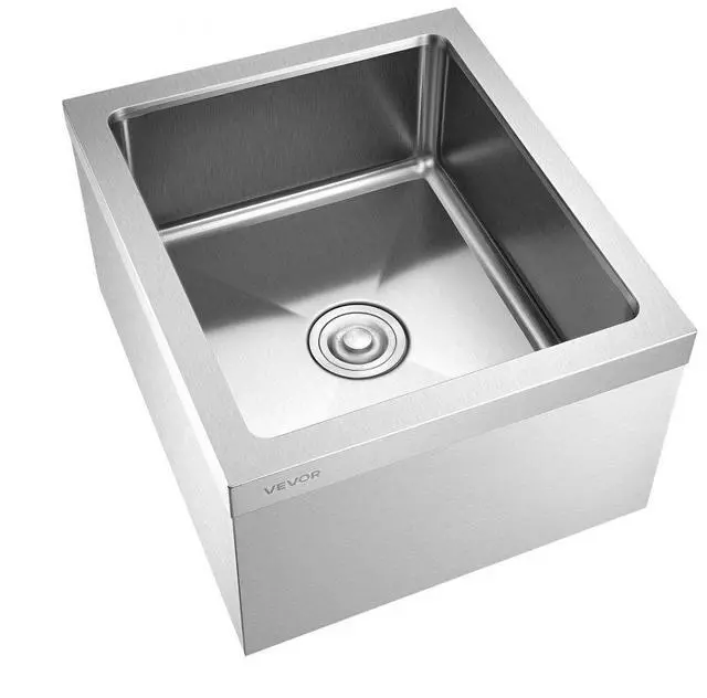 VEVOR Stainless Steel Floor Mop Sink 22 x 19 x 12 in with Wall-Mounted Bracket