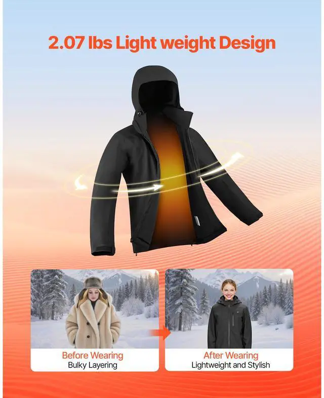 VEVOR Heated Jacket for Women with 7.4V Battery Pack Winter Soft Shell L