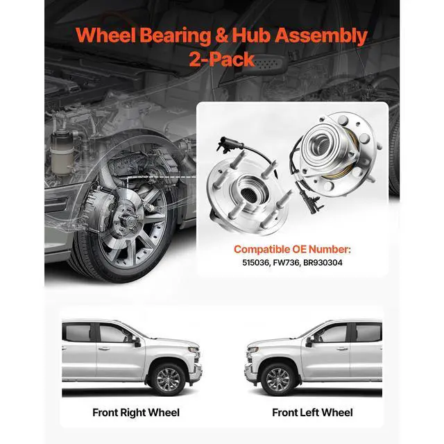 VEVOR Front Wheel Bearing & Hub Assembly Pair for Chevrolet Silverado 1500 4WD