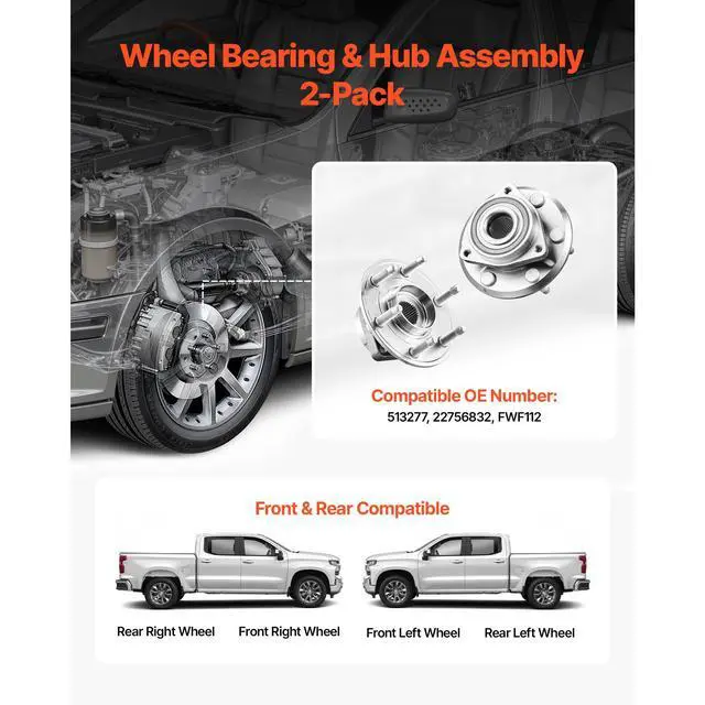 VEVOR Front/Rear Wheel Bearing & Hub Assembly Pair for 2016-2017 Buick Enclave