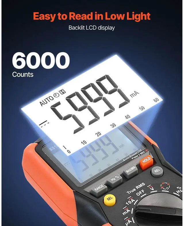 VEVOR Digital Multimeter 6000-Count TRMS Voltmeter Current Tester Auto-Ranging