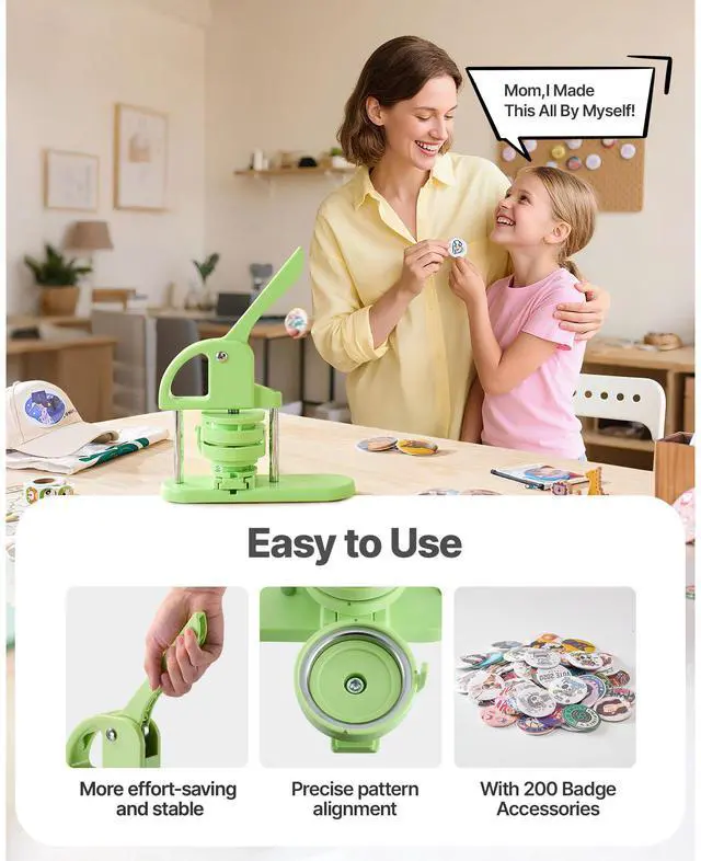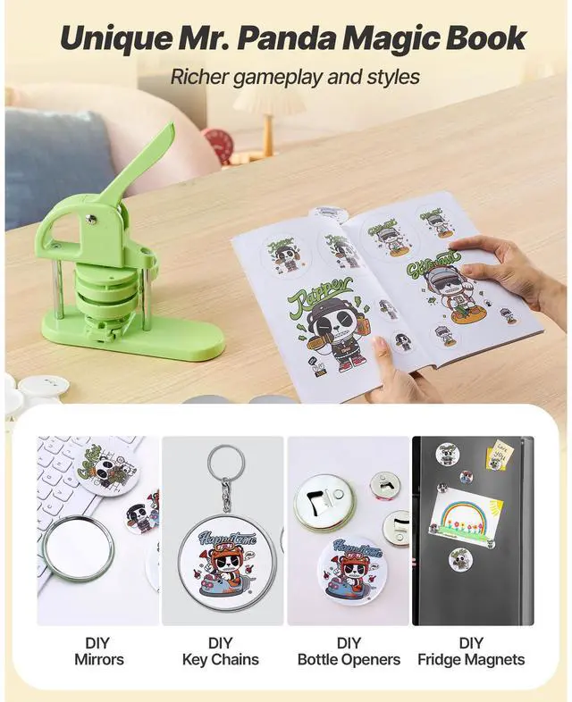 VEVOR Button Maker Machine Plastic Pin Maker 2.28/2.95 inch with 200pcs Parts