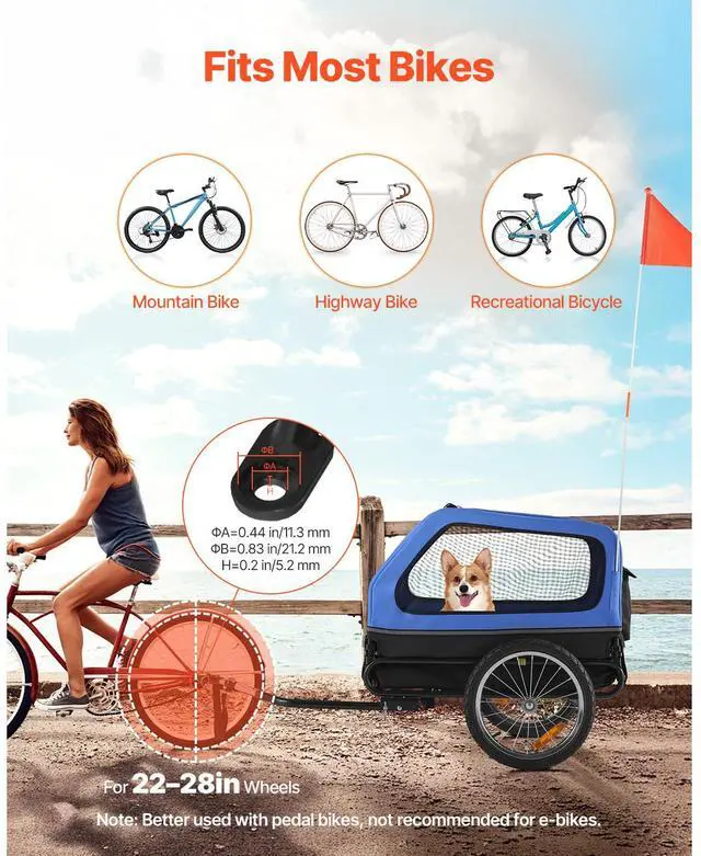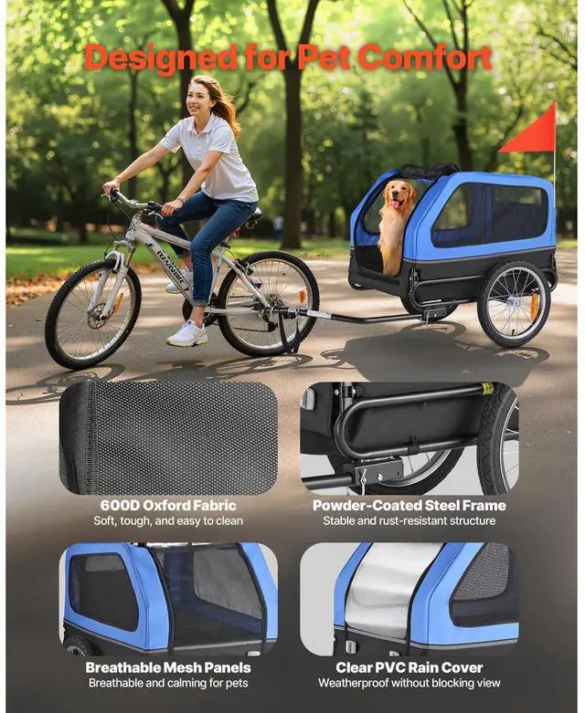 VEVOR Dog Bike Trailer Pet Bicycle Trailer Cat Carrier 88 lbs Water Resistant