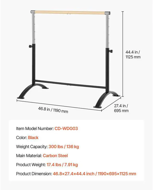 Weight Capacity: 300 lbs / 136 kg,Product Dimension: 46.8x27.4x44.4 inch / 1190x695x1125 mm,Color: Black,Item Model Number: CD-WDG03,Product Weight: 17.4 lbs / 7.91 kg,Main Material: Carbon Steel