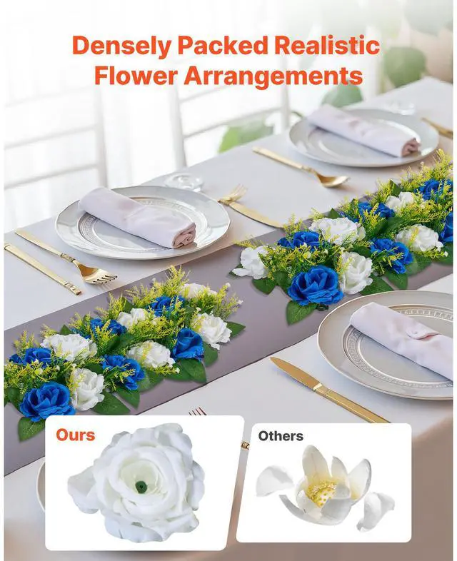 Flower Balls for Wedding Centerpieces Fake Flower Arrangement Blue + White 10PCS
