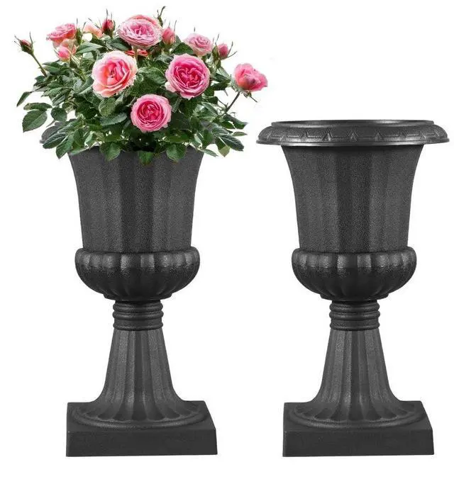 VEVOR Plastic Urn Planters 9.8 x 16.5 Inch Black Floral Pedestal Flower Pots