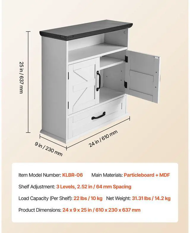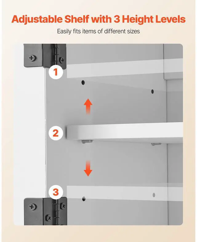Shelf Adjustment: 3 Levels, 2.52 in/64 mm Spacing