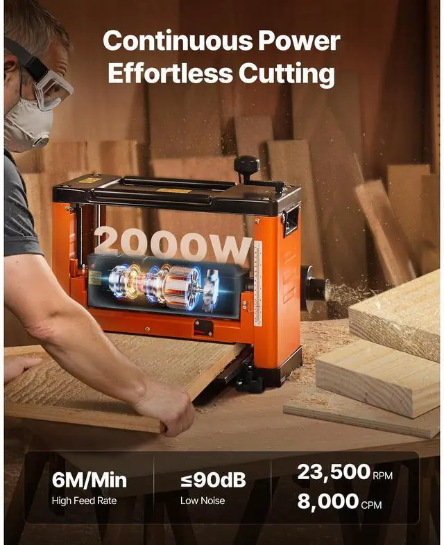 VEVOR Thickness Planer 13-Inch Power Benchtop Planer 2000W Spiral Cutterhead