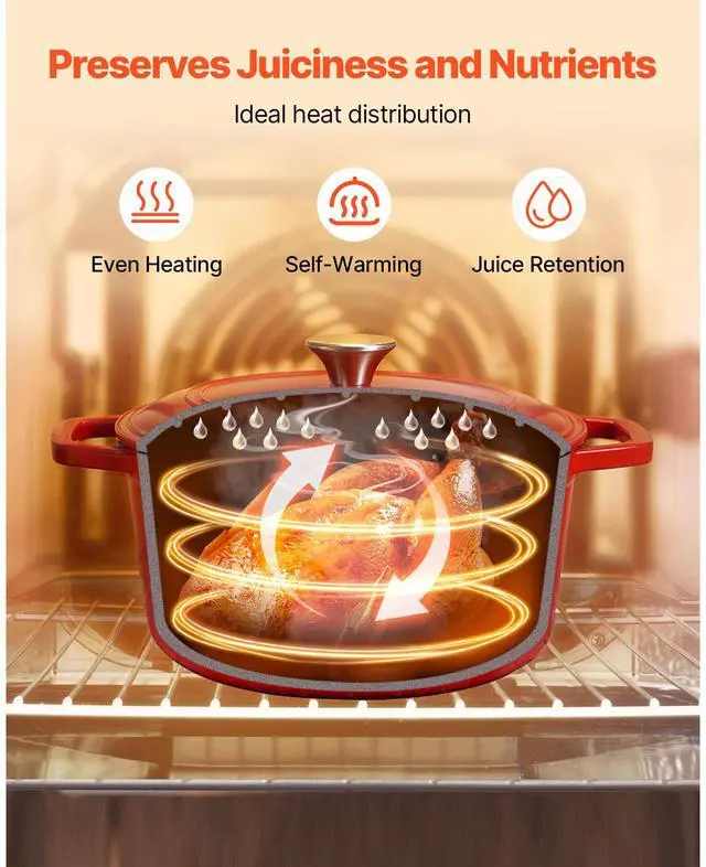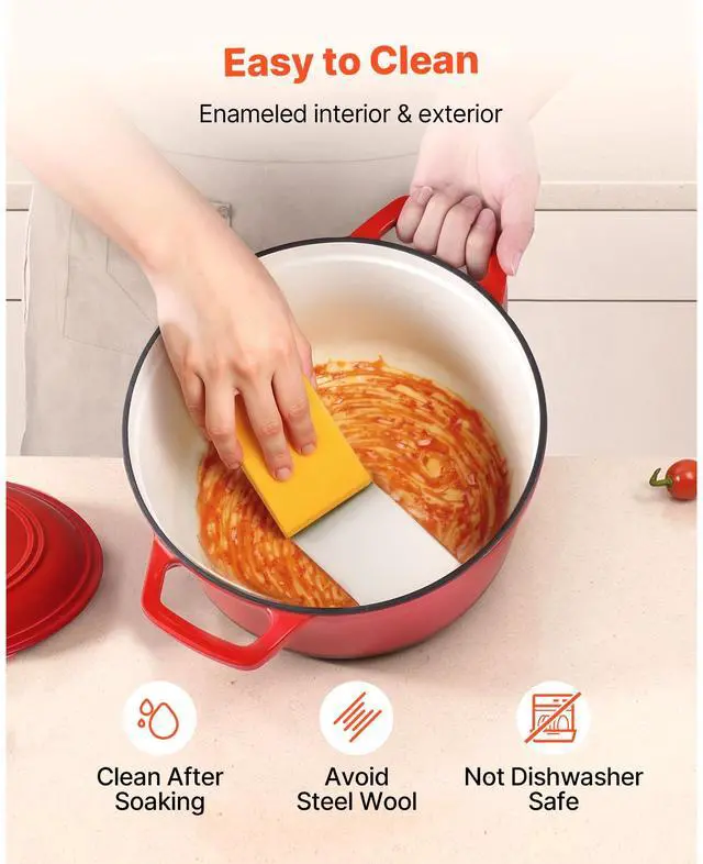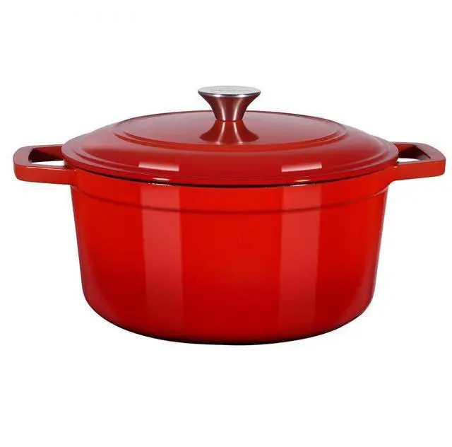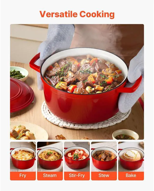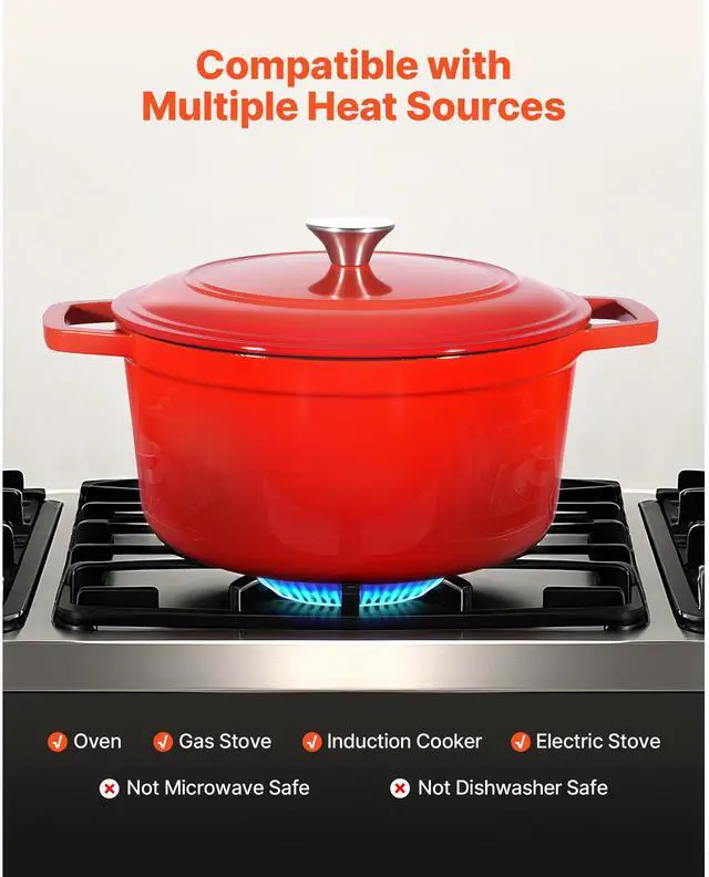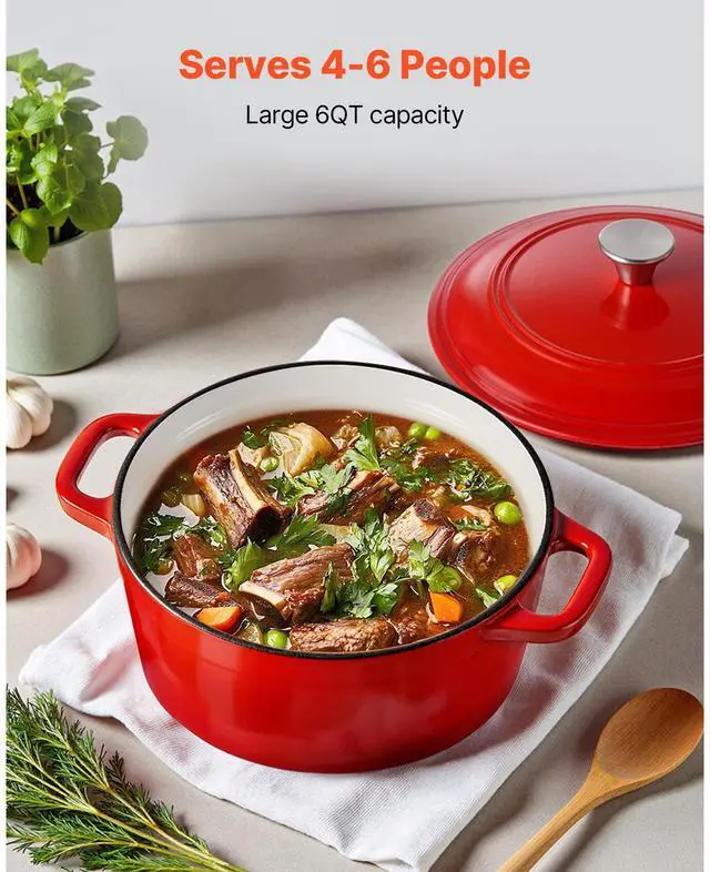 Enameled Cast Iron Dutch Oven Heavy-Duty Cookware with Lid Handles 6 Qt Red