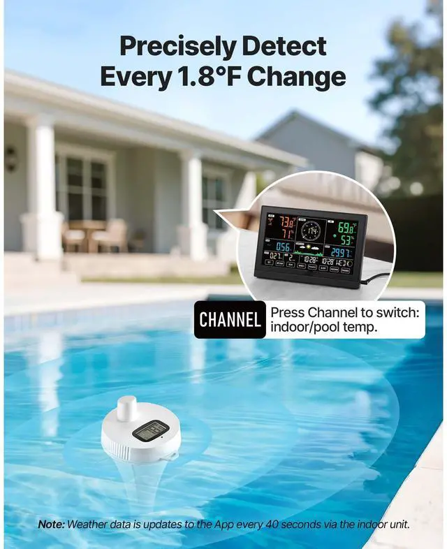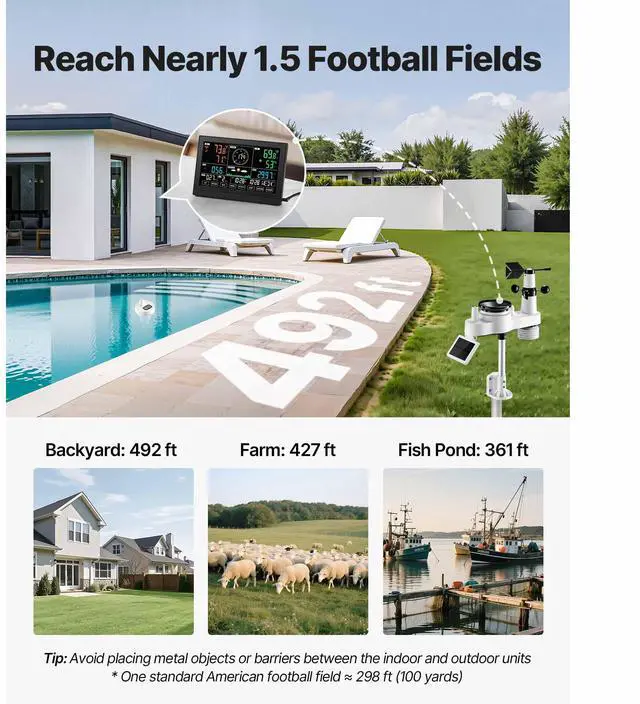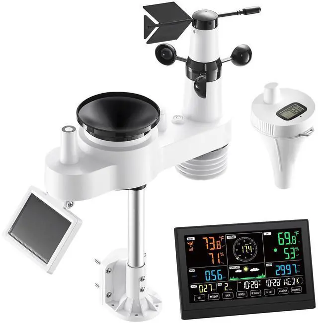 VEVOR 7-in-1 Wi-Fi Weather Station 7.5 in Display Wireless Outdoor Sensor Pool