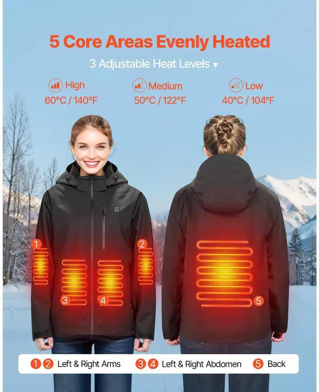 VEVOR Heated Jacket for Women with 7.4V Battery Pack Winter Soft Shell XL