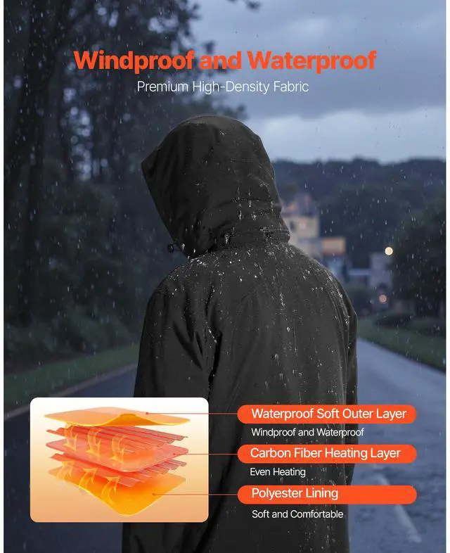 Size: XL,Three Temperature Levels: 104140 / 4060 ,Color: Black,Item Model Number: RHB-001,Style: Women,Input Voltage: 7.4 V,Item Dimensions: 55.91 × 34.65 inch / 1420 × 880 mm,Net Weight: 2.07 lbs / 0.94 kg,Power: 13 W,Main Material: Waterproof Outer Fabric + Polyester Lining,Power Bank Capacity: 8000 mAh